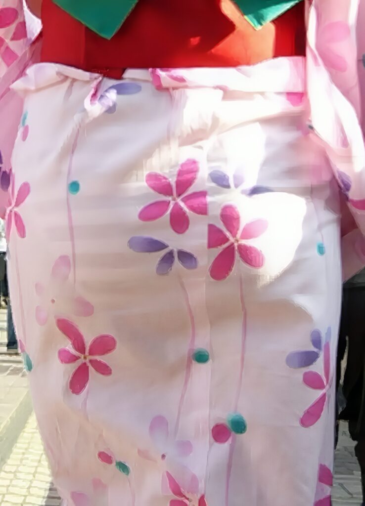 ピンクでもここまで透けちゃうなんて、やっぱり浴衣は素晴らしいです。