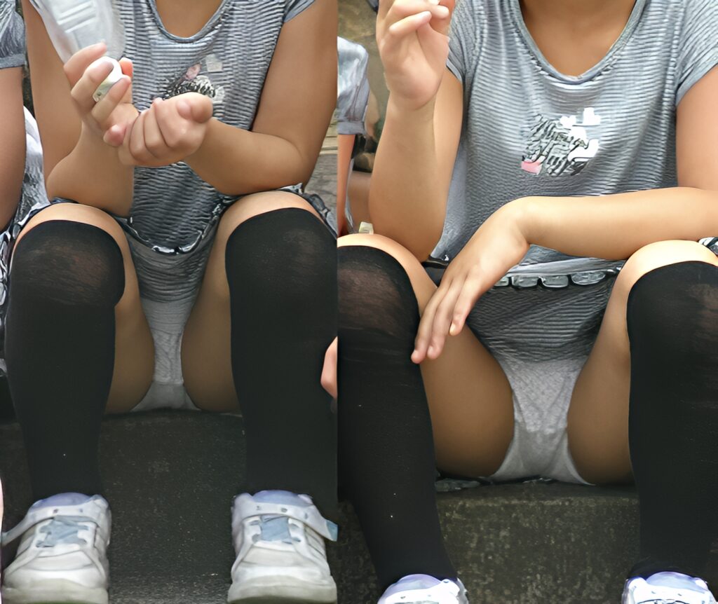 JK しゃがみ パンチラ ぱんちら 柄パン 純白 縞々 透け透け