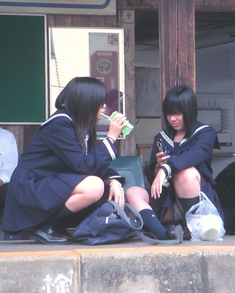 -JK, しゃがみ, パンチラ, ぱんちら, 柄パン, 純白, 縞々, 透け透け